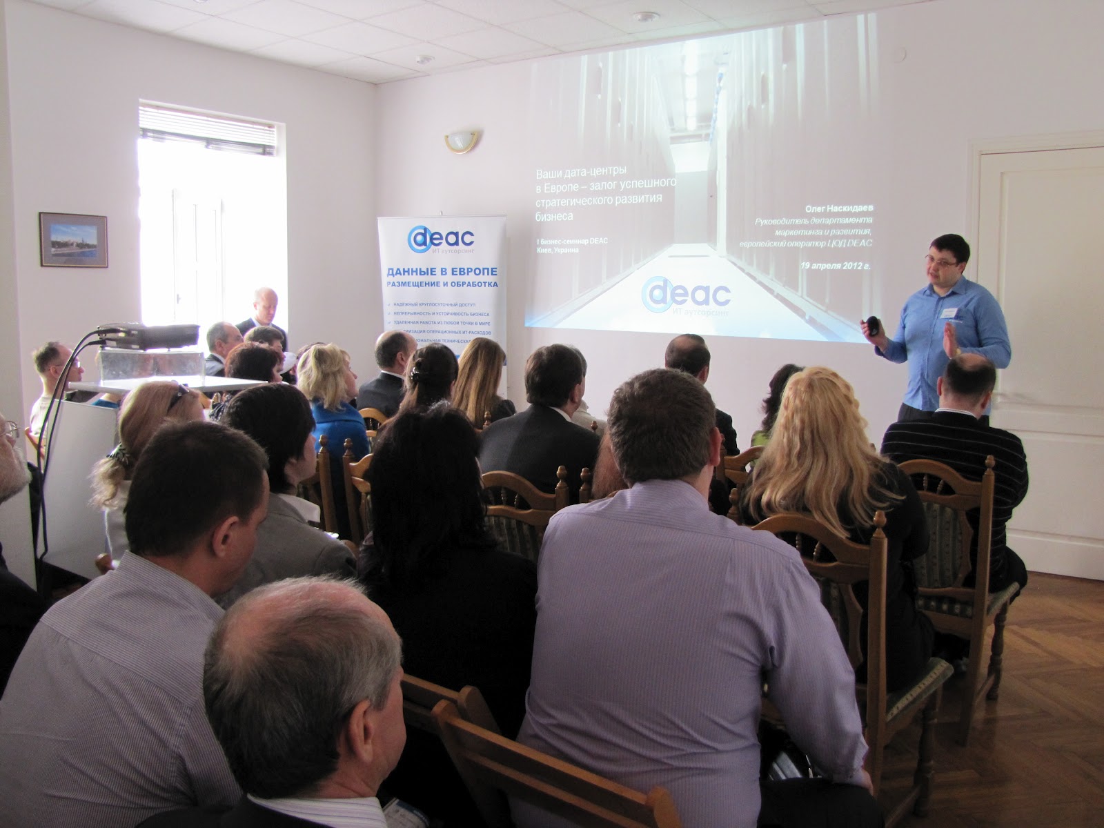 Pasākumu Kijevā atklāja un vadīja LIAA pārstāvniecības vadītājs Ukrainā – Āris Kotāns. DEAC jau vairākus gadus produktīvi sadarbojas ar LIAA pārstāvniecību Maskavā, bet kā pierāda Kijevas seminārs, tagad veiksmīga sadarbība ir aizsākusies ar LIAA arī Kijevā. Biznesa semināra klausītājus īpaši ieinteresēja DEAC Mārketinga un attīstības departamenta vadītāja Oļega Naskidajeva prezentācija ”Veiksmīgas uzņēmuma stratēģiskās biznesa attīstības garants – Jūsu datu centri Eiropā”. Prezentācijas gaitā DEAC eksperts pastāstīja par galvenajiem izvēles faktoriem, kas sniedz iespēju Ukrainas uzņēmējiem uzticēties tieši DEAC. Pirmkārt, tie ir DEAC datu centri, kuri spēj nodrošināt datu uzglabāšanas un apstrādes standartus no TIER I līdz TIER IV līmenim, otrkārt, izvērstais un pārdomātais DEAC komunikāciju tīkls, treškārt, DEAC IT ekspertu augstais kvalifikācijas līmenis.
