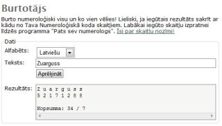 Katrs pats var izburtot savu vārdu un noskaidrot skaitļu vibrācijas – http://www.numerologi.lv Burtotājā.