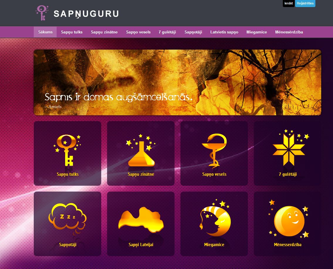 „SapņuGuru” tulks piedāvā dažādu autoru un tautu populārākos sapņu simbolu skaidrojumus. Tajā atrodami arī par latviešu Nostradamu dēvētā pareģa Eižena Finka unikālie sapņu tulkojumi. Reģistrējoties kā portāla lietotājiem, sapņotājiem pieejams ļoti plašs precīzu sapņu skaidrojumu klāsts, ko daudzu desmitu garumā izstrādājuši pasaulslaveni psihoanalītiķi, pareģi un viedie domātāji. Ideja par profesionāla sapņu tulka izveidi vispirms tika iedzīvināta sociālajā tīklā „draugiem.lv” pieejamajā aplikācijā „SapņuGuru”, kurai pašlaik „seko” jau vairāk nekā 22 tūkstoši sapņotāju.