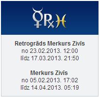 Nākamās trīs nedēļas no 23. februāra līdz 17. martam biznesu, publiskās runas, visa veida kontaktus, komunikāciju, tirdzniecību un transportu ietekmējošā planēta Merkurs virzīsies retrogrādā kustībā, kas nozīmē to, ka ar šīm jomām saistītie procesi un attīstība nenoritēs kā iecerēts.