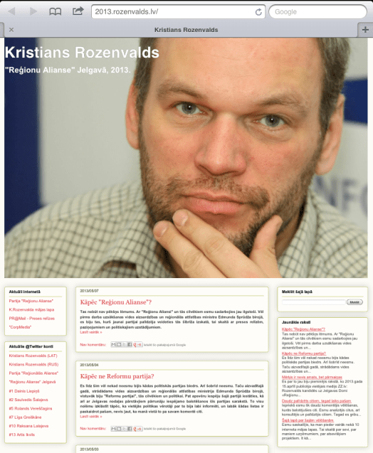 “Tas, vai priekšvēlēšanu kampaņai ir nepieciešama īpaša mājas lapa, man pašam bija strīdīgs lēmums. Iepriekš arī pats biju publiski komentējis, ka kandidātam vajadzētu būt vienādi aktīvam gan pirms, gan arī pēc vēlēšanām, ka kampaņa sākas jau nākamajā dienā pēc vēlēšanām gan tiem, kas ievēlēti, gan arī tiem, kas palikuši aiz strīpas,” stāsta Kristians Rozenvalds.