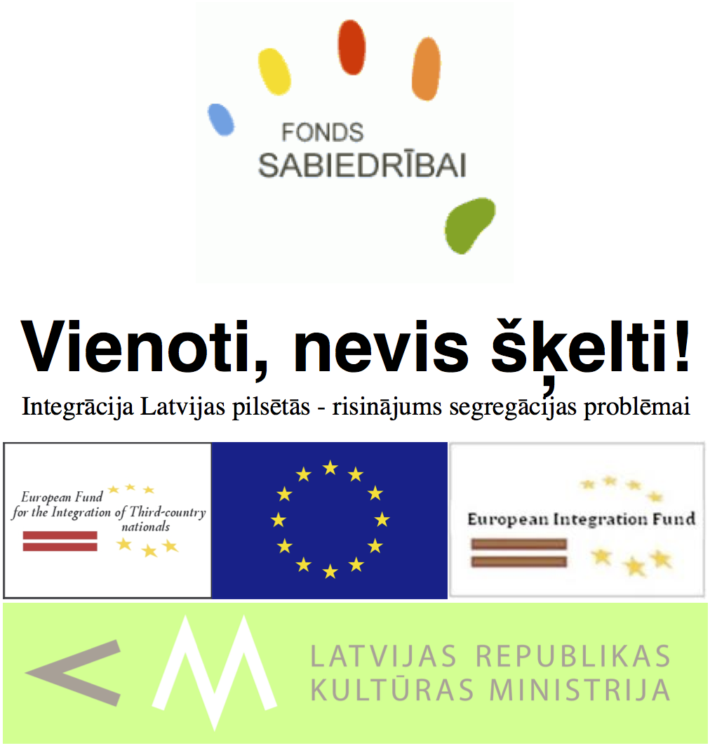 Visas augstākminētās aktivitātes tiek īstenotas Eiropas Trešo valstu valstspiederīgo integrācijas fonda (75%) un valsts budžeta (25%) finansētu projekta „Vienoti, nevis šķelti!” ietvaros (līgums Nr.: IF/2012/1.a./12).