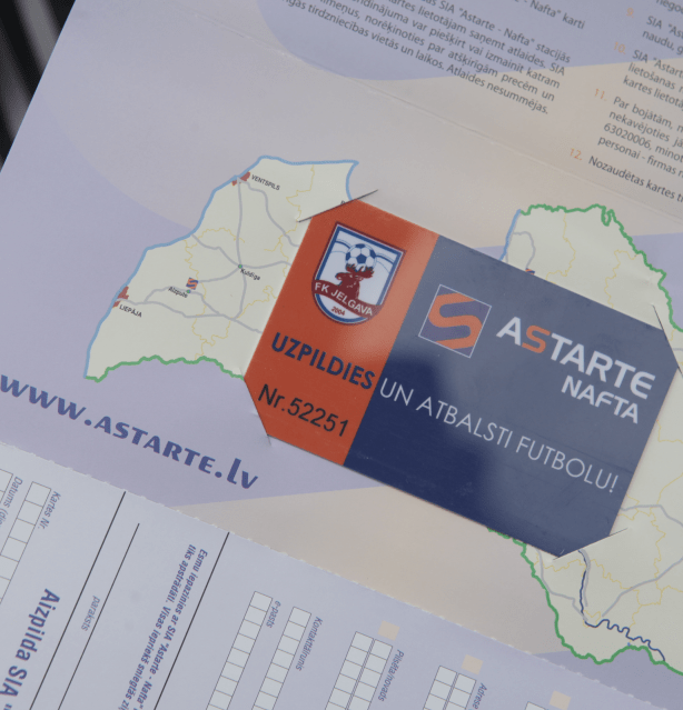 „Jelgavas futbola degvielas kartes” moto ir “Uzpildies un atbalsti futbolu!”.
