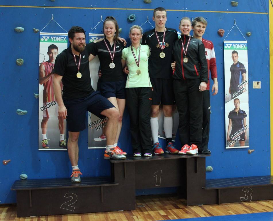 Trīs reizes uz pjedestālā kāpa arī rīdzinieks Niks Podosinoviks, izcīnot zelta medaļas vīriešu vienspēles un jauktajās dubultspēlēs kopā ar Kristīni Šefere, taču vīriešu dubultspēlēs pārī ar siguldieti Kristapu Kalniņu tika izcīnīts sudrabs, finālspēlē zaudējot siguldiešu pārim Teodoram Kerimovam un Kristapam Jānim Gulbim.