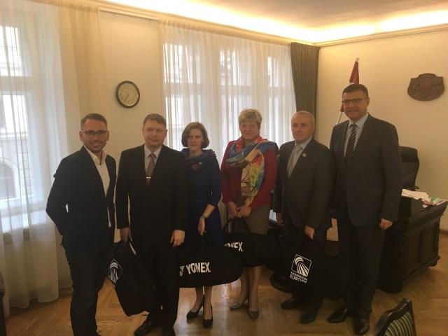 6.oktobrī Latvijas labklājības ministrs Jānis Reirs un Latvijas badmintona federācijas prezidents Mareks Gruškevics pasniedza Pasaules badmintona federācijas skolu programmas “Shuttle time” badmintona komplektus četrām Latvijas speciālajām internātskolām – Pelču, Lielplatones, Sveķu un Spāres. Saņemt inventāru LR Labklājības ministrijā bija ieradušies visu četru skolu direktori.