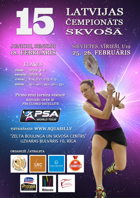 Februāra otrajā pusē Rīgā norisināsies jubilejas – 15. Latvijas čempionāts skvošā. Čempionāts norisināsies divās nedēļas nogalēs Rīgā, Zelta boulinga un skvoša centrā. 18. februārī sacentīsies juniori un seniori vairākās vecuma kategorijās, bet 25. un 26. februārī notiks pamatturnīrs.