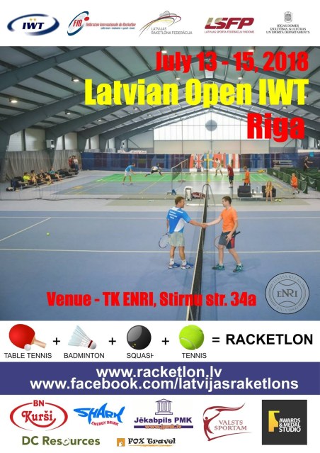 No 13. līdz 15.jūlijam Rīgā, tenisa klubā ENRI (Stirnu iela 34a) norisināsies Pasaules Kausa posms raketlonā “IWT Latvian Open 2018”, kas Latvijā notiek jau ceturto gadu pēc kārtas.