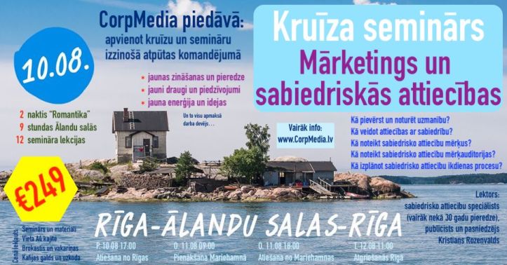 Korporatīvo mediju centrs “CorpMedia” augustā rīkos kruīza seminārus par mārketingu un sabiedriskajām attiecībām. Tagad tas ir iespējams, jo “Tallink” atsācis organizēt kruīzus no Rīgas, vairs ne uz Stokholmu, bet uz Helsinkiem un Ālandu salām, taču jaunie maršruti varētu radīt papildus interesi. Kruīza semināra programmu ir sagatavojis pieredzējušais sabiedrisko attiecību speciālists Kristians Rozenvalds.