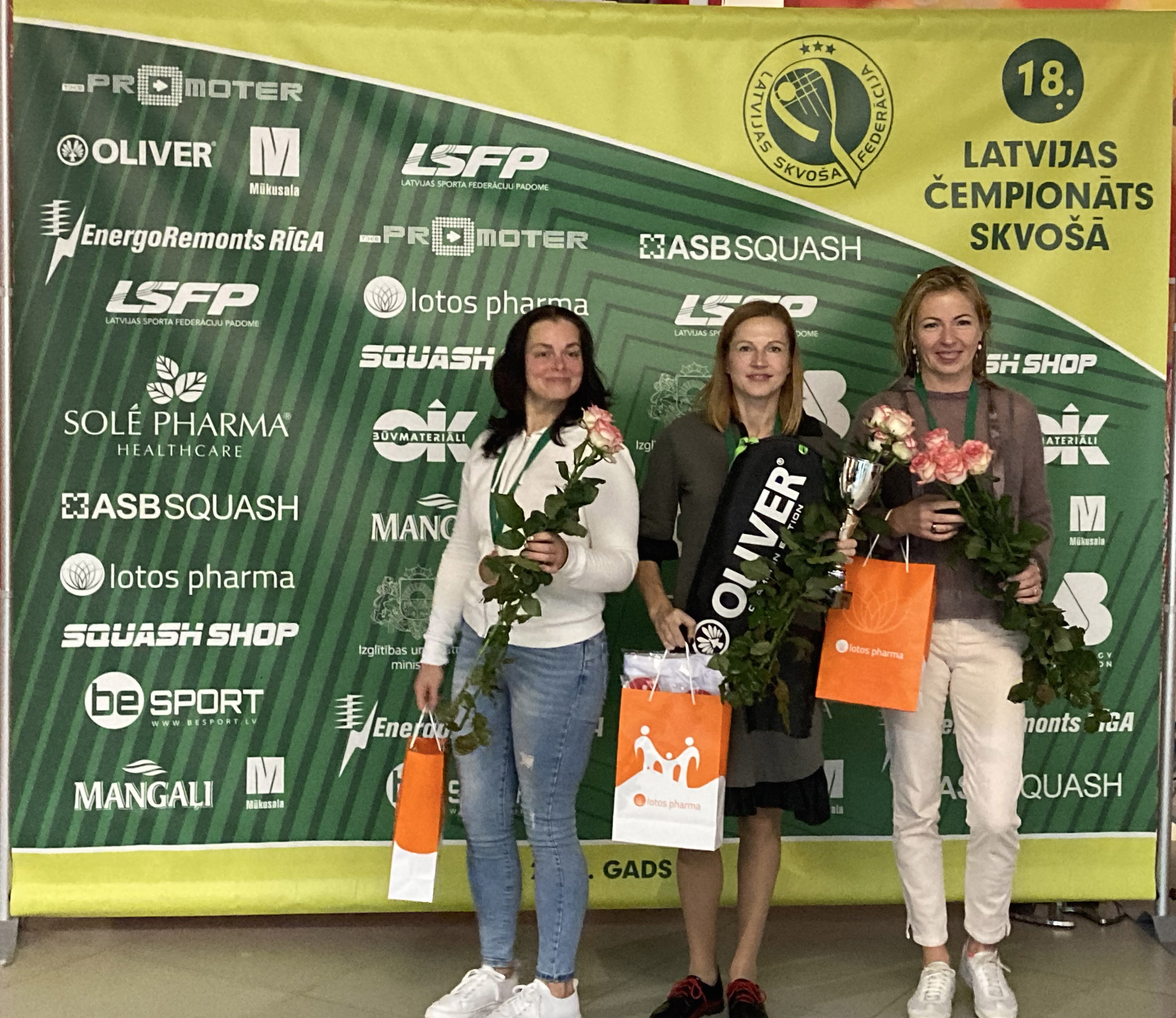 Uzvarētāji 5 jauniešu un 3 senioru grupās tika noskaidroti 18. Latvijas čempionātā skvošā, kas notika 10. un 11. oktobrī Rīgā, Pepsi centrā. Latvijas čempionātu skvošā rīkoja Latvijas Skvoša federācija ar valsts budžeta līdzekļu līdzfinansējumu un privāto atbalstītāju atbalstu. LSF izsaka pateicību atbalstītājiem par balvām uzvarētājiem: skvoša preču veikalam “Squash shop”, SIA BEGRUPA ar Oliver zīmolu un SIA SOLEPHARM un SIA Lotos Pharma.