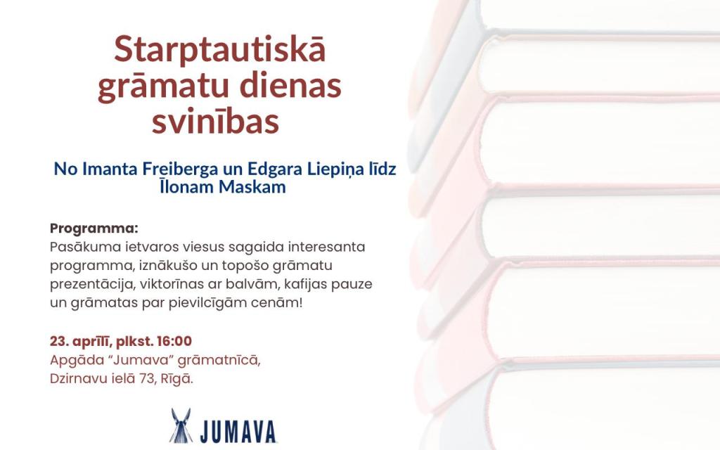 Otrdien, 2024.gada 23.aprīlī no pulksten 16:00, Rīgā, Dzirnavu ielā 73, “Jumava” grāmatnīcas telpās notiks apgāda “Jumava” rīkotais pasākums par godu Starptautiskajai grāmatu un autortiesību dienai.