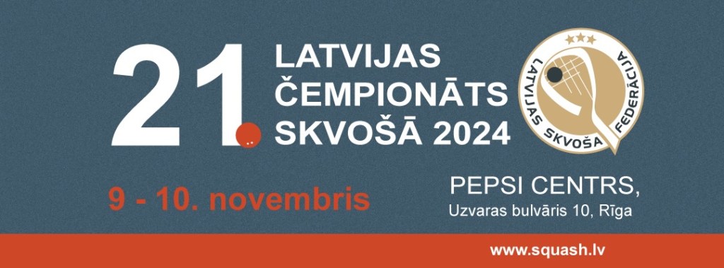 Gan sestdien, 2024.gada 9.novembrī, gan svētdien, 10.novembrī, Latvijas čempionāta skvošā spēles sāksies no pulksten 10:00, finālspēles paredzētas svētdien, 10.novembrī ap pulksten 16:00.