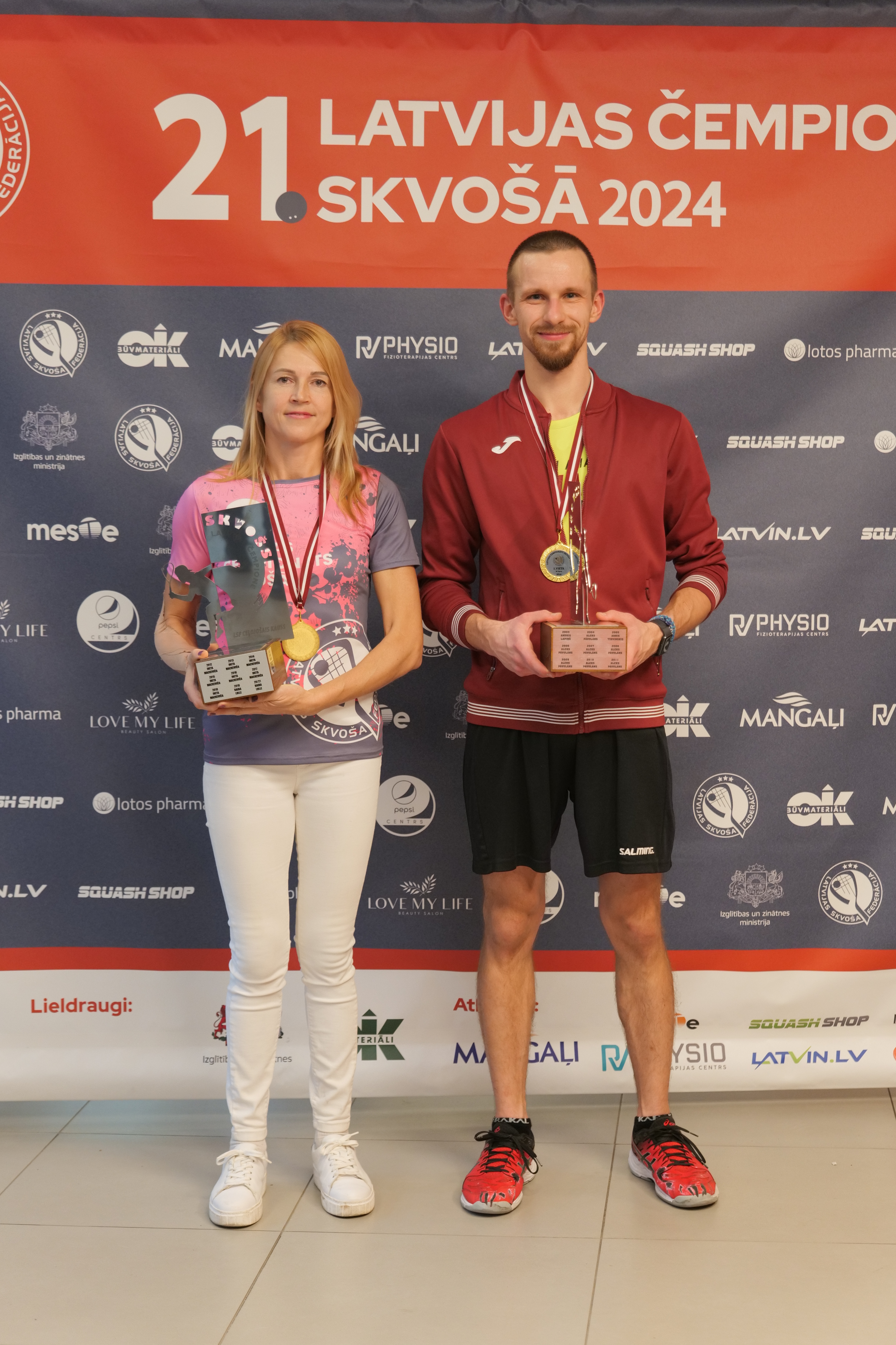 Balvas Latvijas čempionāta uzvarētājiem nodrošināja Latvijas Skvoša federācija un tās atbalstītāji: skvoša un citu sporta preču veikals “Squash Shop”, fizioterapijas centrs “RV Physio”, skaistumkopšanas salons “Love My Life”, gastrobārs “Meste”, kā arī Latvijas Skoša federācijas lieldraugs “OK Būvmateriāli”.