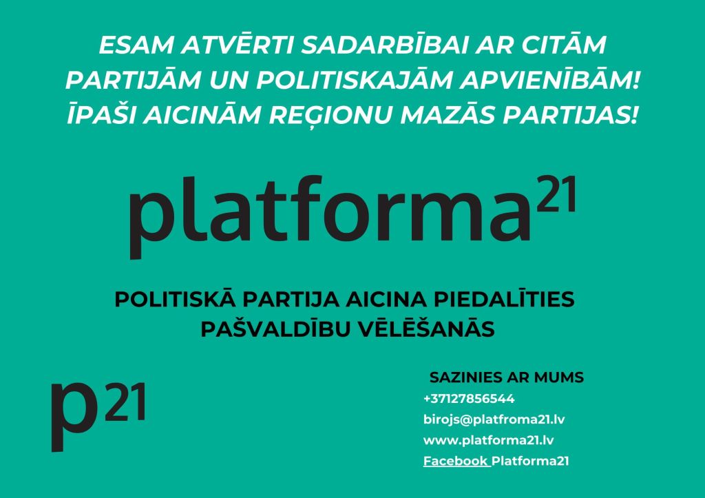 Politiskā partija “Platforma 21”, līdz ar nosaukuma un identitātes maiņu, piedāvā sevi kā atvērtu platformu uz 2025.gada 7.jūnija pašvaldības vēlēšanām, aicinot to izmantot mazās reģionālās partijas un individuālos aktīvistus. Politiskās partijas “Platforma 21” valdes loceklis Jānis Ronis kā vienīgo ierobežojumu min “ģeopolitiskās sarkanās līnijas”, kuras saistītas ar nacionāliem jautājumiem Latvijā vai karu Ukrainā.